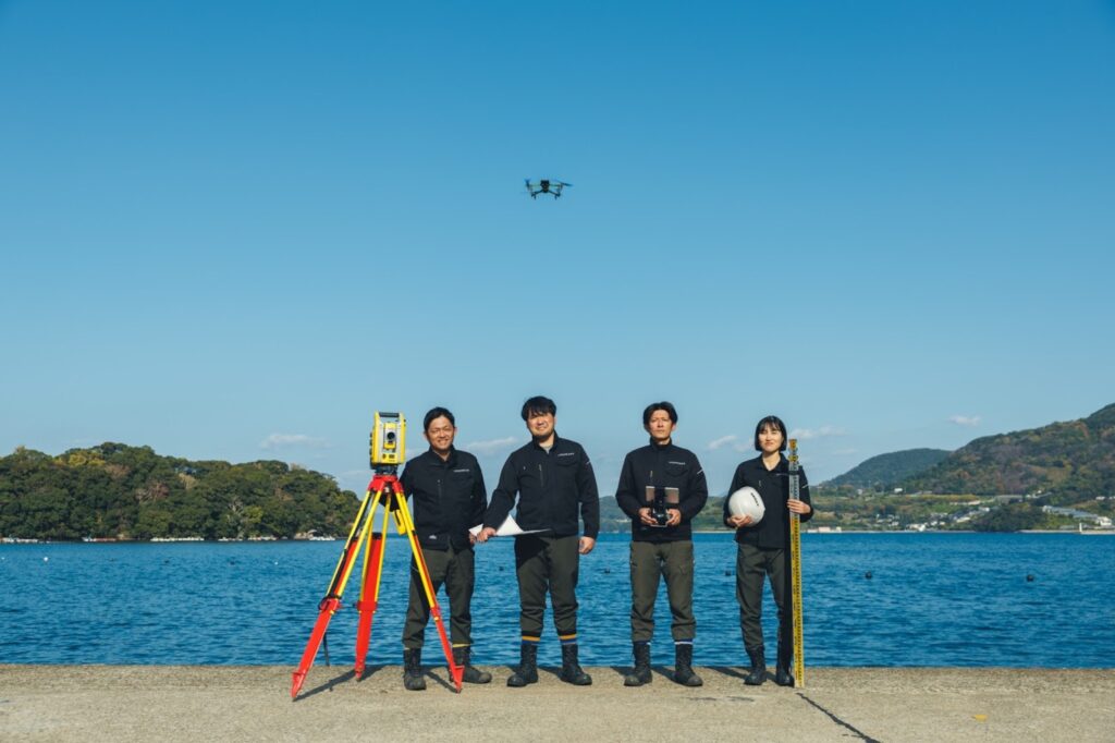 測量は道路・山・港湾・ダム・水中など、場所に応じてドローン・レーザースキャナー・音響測深などを使い分けます。