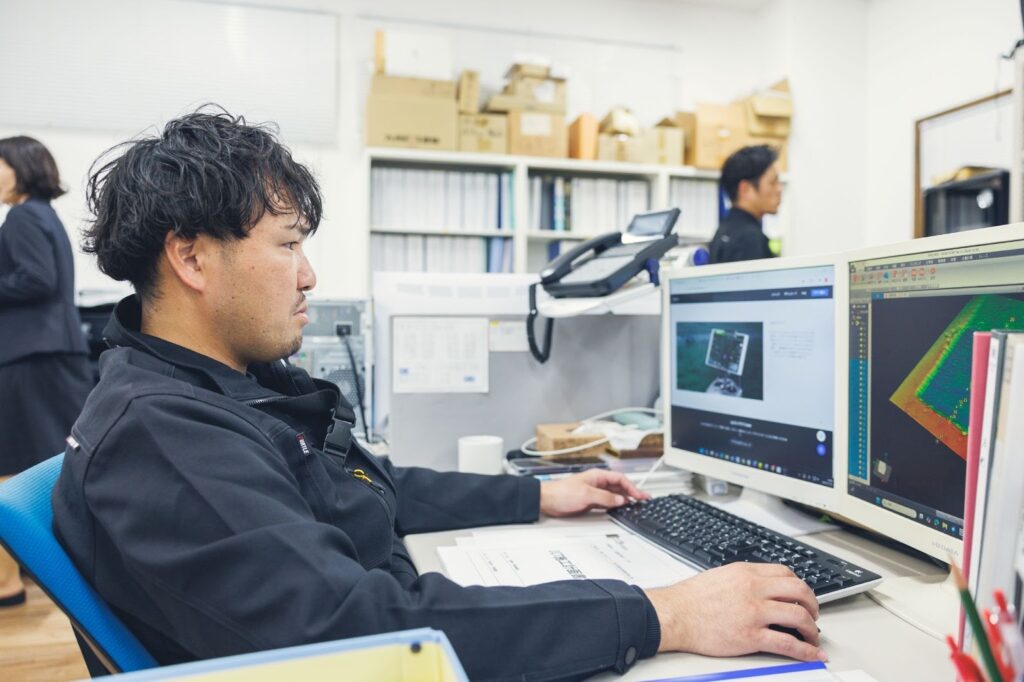 県の仕事と、施工会社向けの仕事を並行していて、地形や高さを測り、地図に近いレベルの3Dモデルを作るのが中心です。